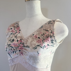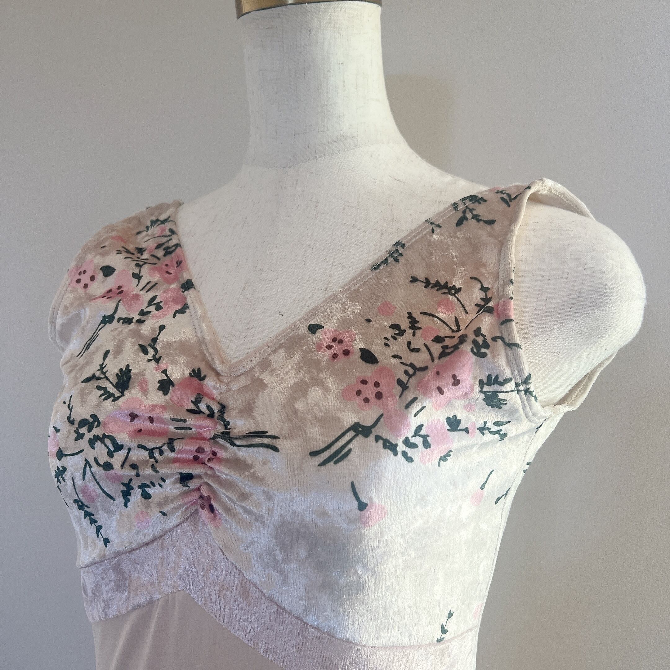 Vネック ベロアフラワー タンクレオタード(アイボリー)