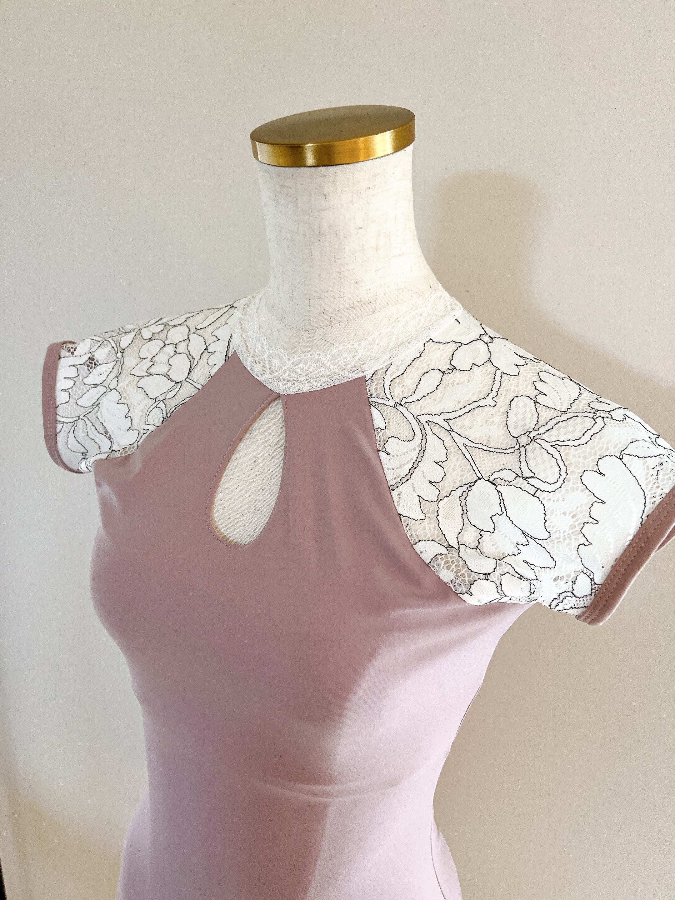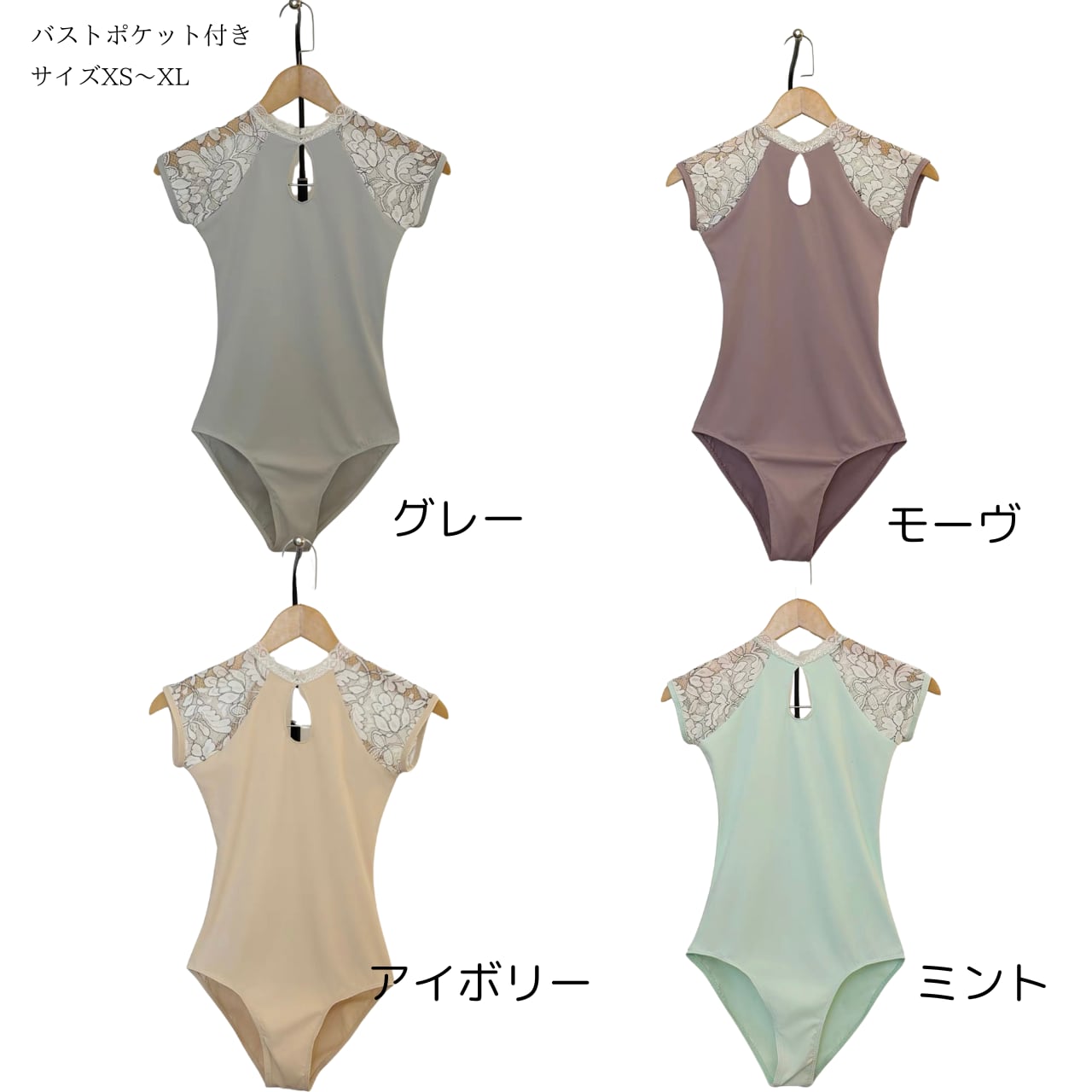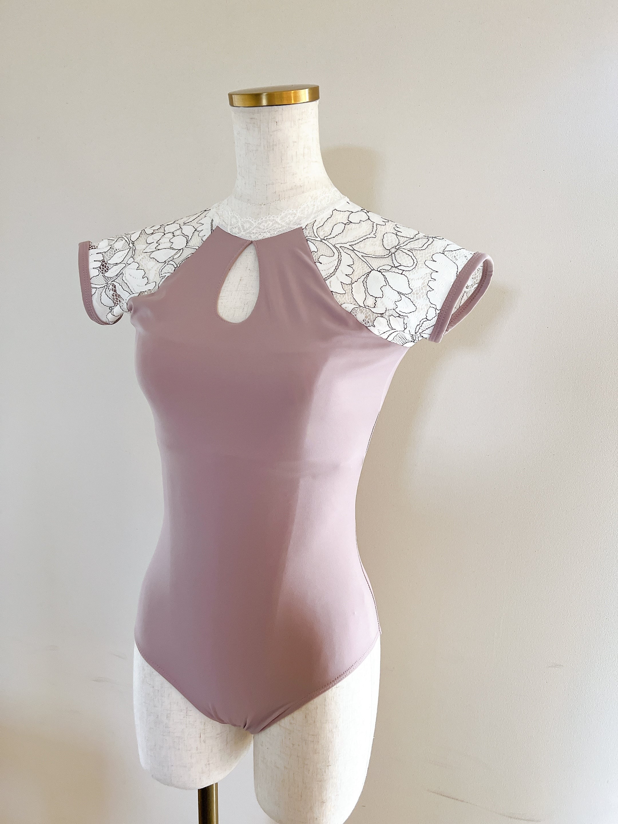 透かしレース キャップスリーブ バレエレオタード(モーヴ)