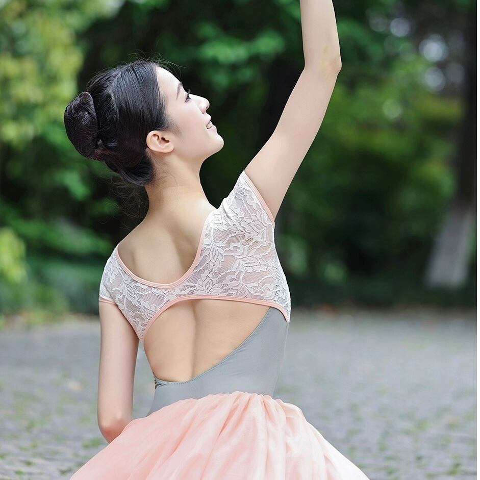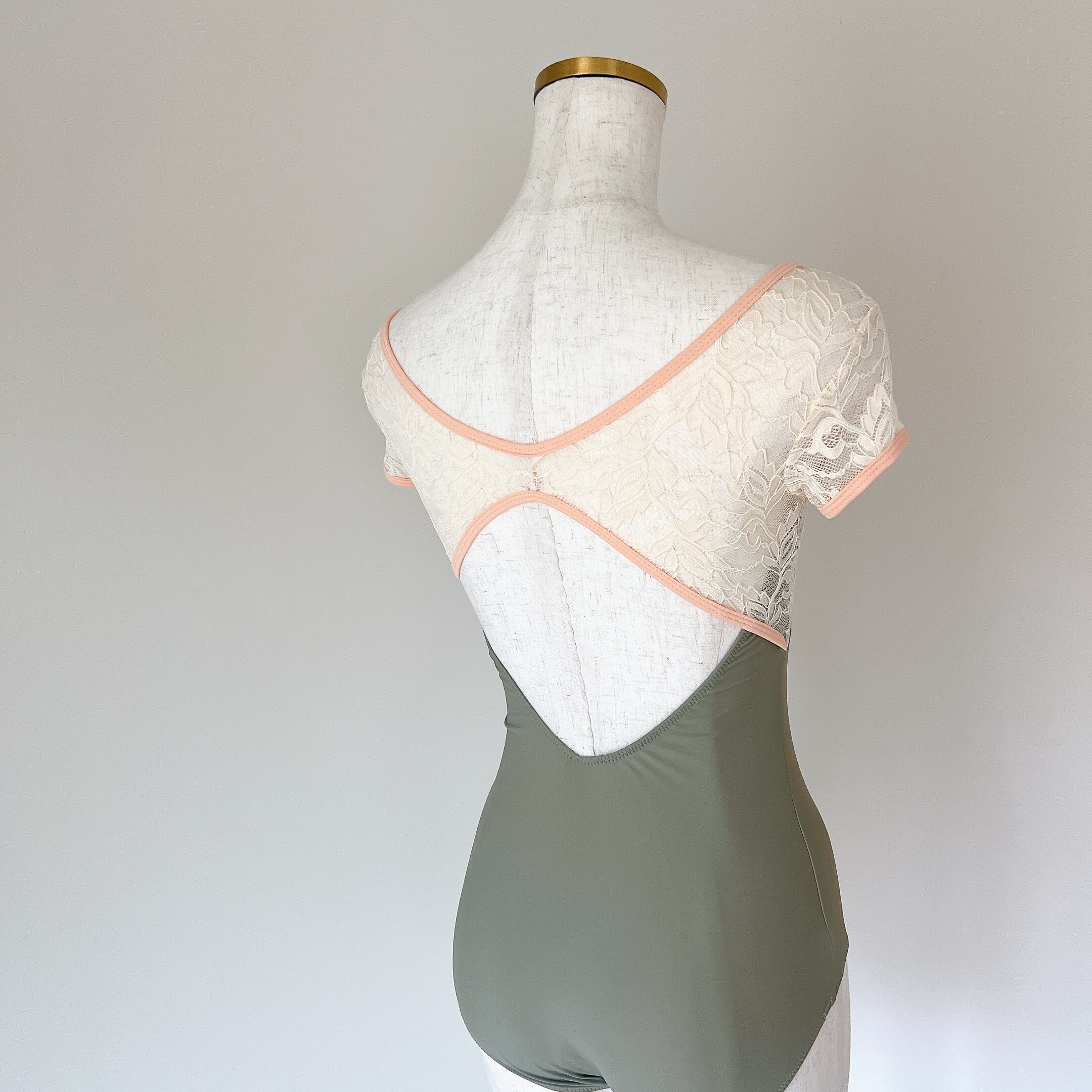 カシュクールレース パイピング バレエレオタード(khaki×pink)