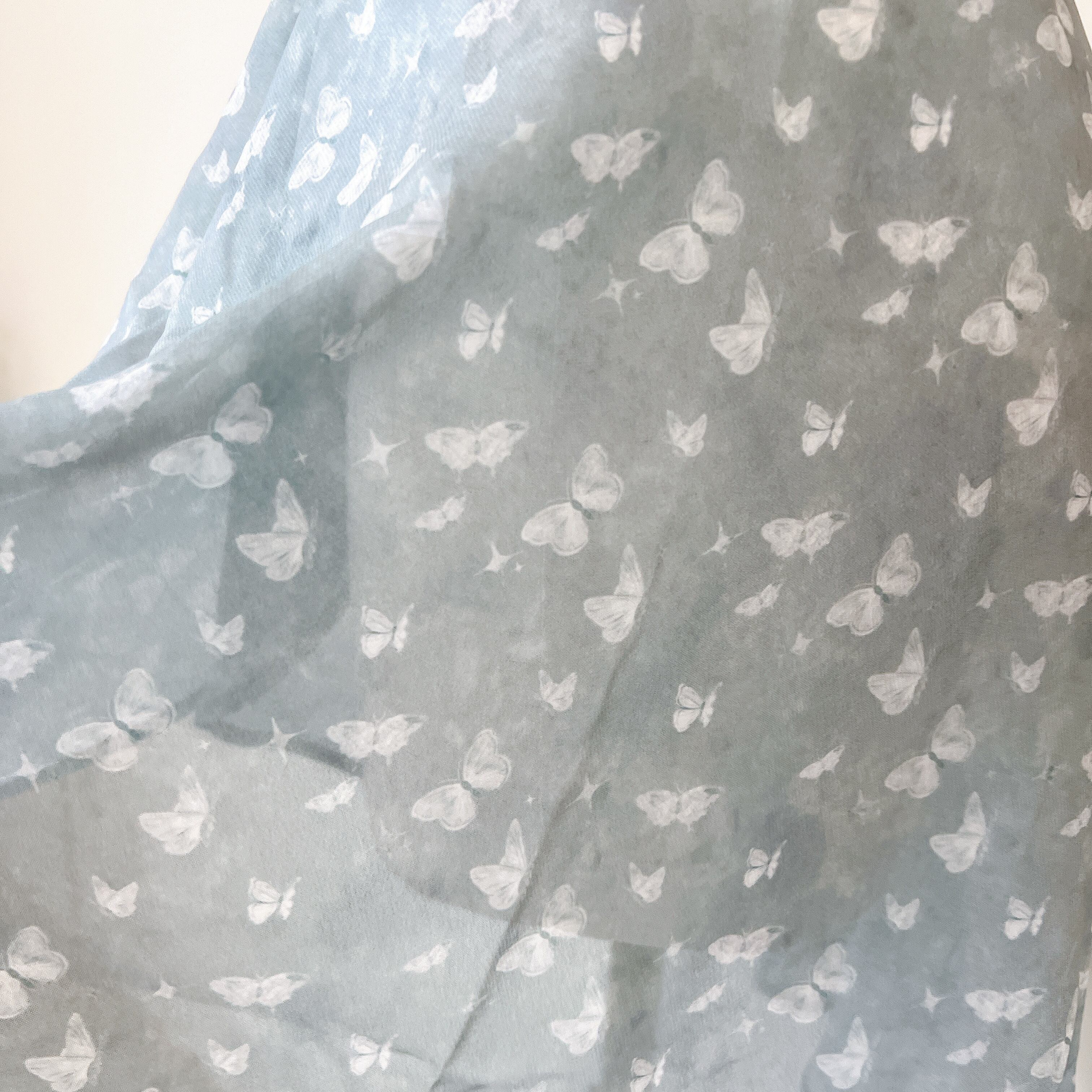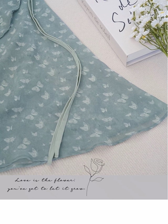 セージグリーンにバタフライのプリントの美しいスカートです。