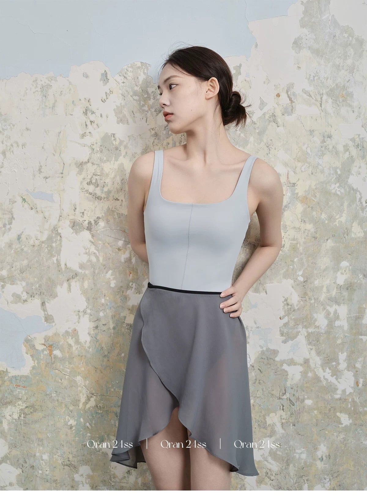 Qran タイトシルエット シルキーシフォン ラップスカート(2color)