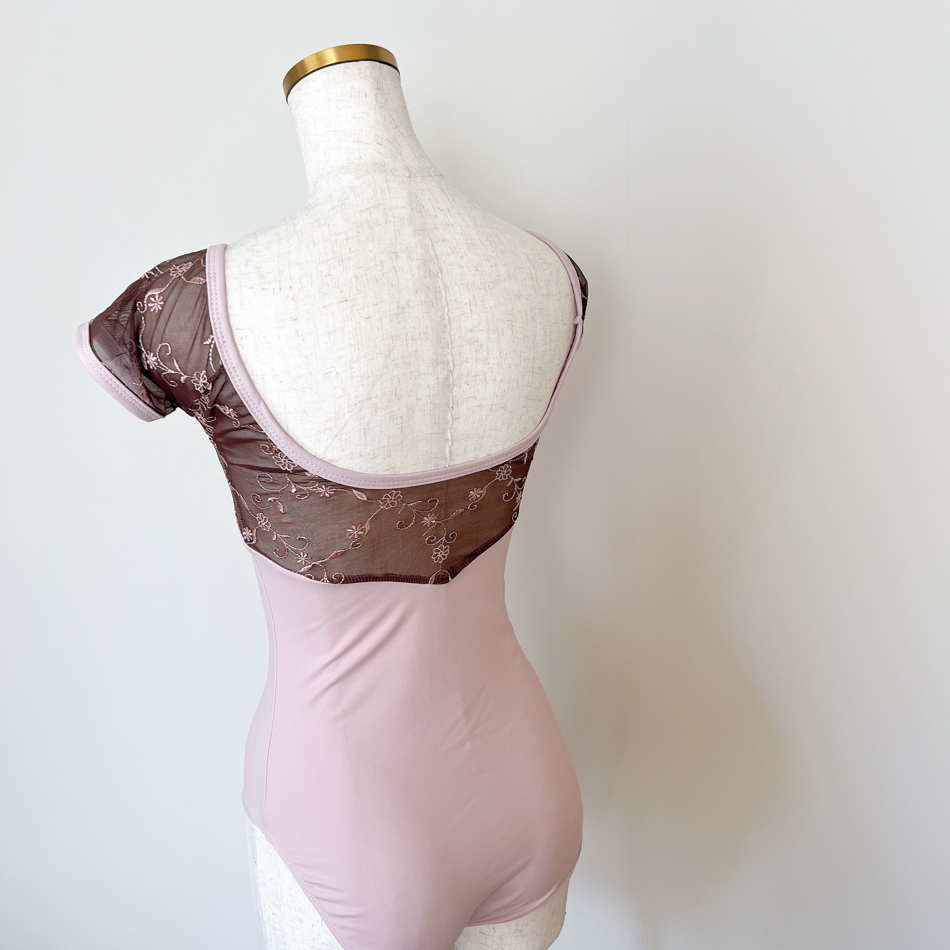 ピンチフロント 刺繍 ハーフスリーブ バレエレオタード(Pピンク)