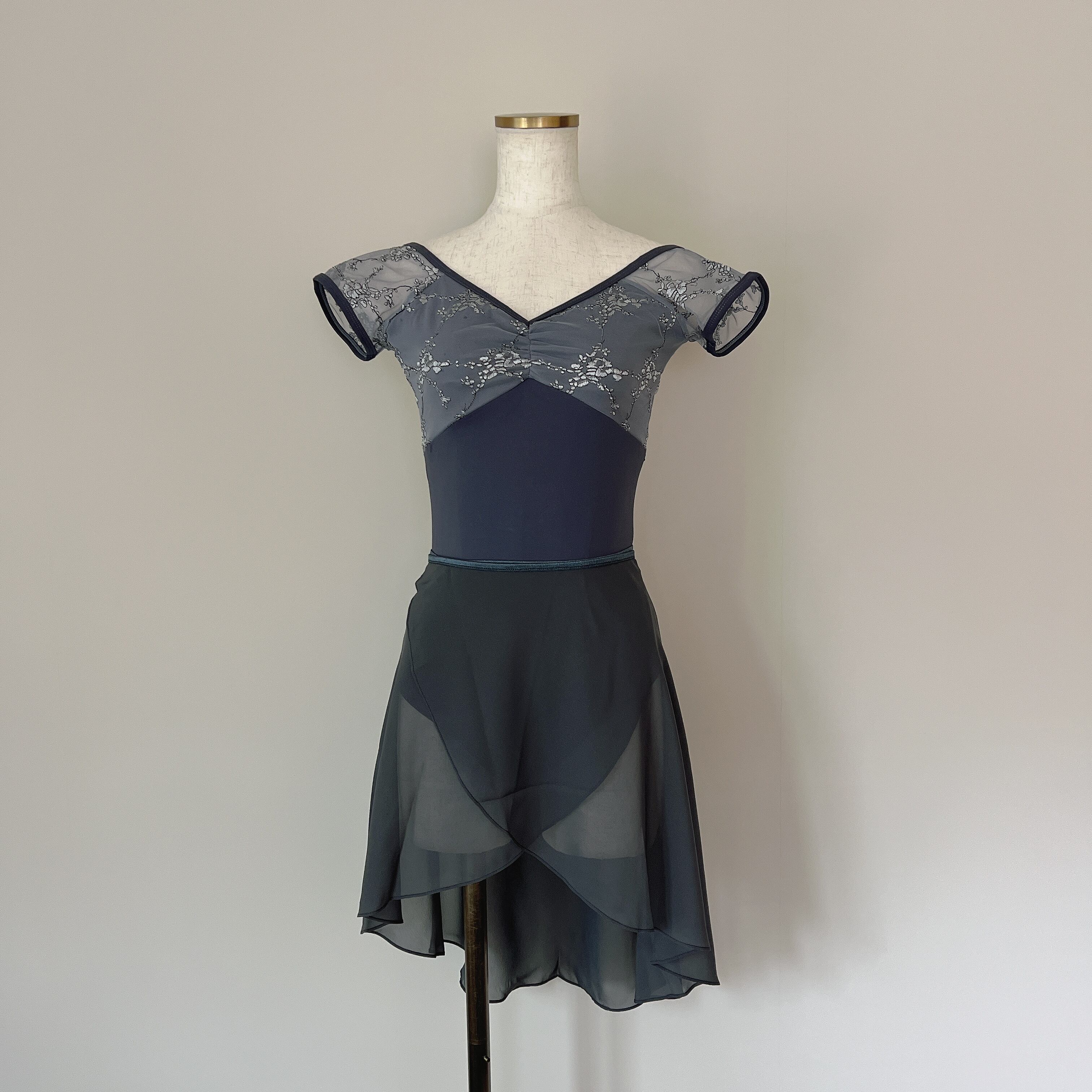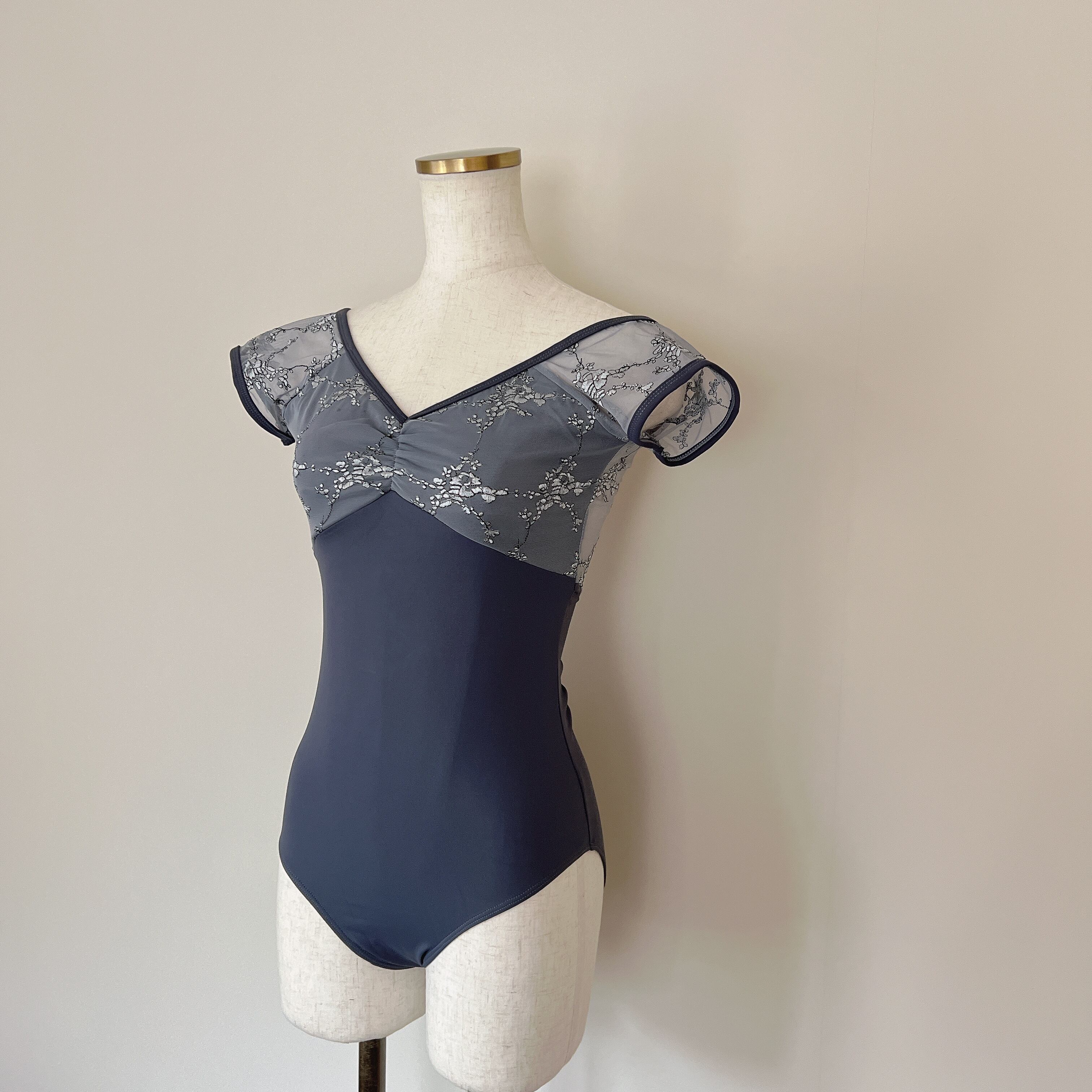 ピンチフロント 刺繍 ハーフスリーブ バレエレオタード(Gネイビー)